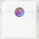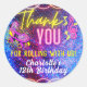 Adesivo Redondo Festa de patinagem da menina rosa-neon Obrigado