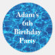 Adesivo Redondo Festa de Piscina de Aniversário Nome Personalizado