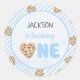 Leite e Biscoitos Vinheta redonda clássica de primeiro aniversario azul