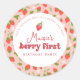 Adesivo Redondo Festa de Primeiro Aniversário da Moranguinho
