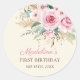 Vinheta redonda clássica de festas de primeiro aniversario de flor selvagem