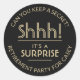Shhh! É uma surpresa! Adicione um toque elegante personalizado a convites de festas de aposentadoria surpreendentes, decorações e favores com esses na moda preto e dourado / selos de envelopes. Personalize o texto em um círculo, assim como a saudação no centro com a mensagem de sua escolha. Todo o texto nesses rótulos é simples de personalizar para qualquer ocasião. Como opção, a tipografia curva pode ser um nome e endereço para uso como etiquetas de endereço de volta redonda quic moderna. Observe que o ouro é impresso a cor, não a folha metálica.