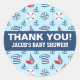 Ahoy! Planejar um partido náutico? Este será um adesivo de excelente para favoritos para festas. Ele tem um padrão feito usando vários itens náuticos como barco a vela com uma pequena estrela, âncora, boia, bússola, uma tarte de bebê listrada azul e branca. A paleta colorida de vermelho, branco, azul com fundo azul claro é perfeita para um tema náutico! Excelente para chá de fraldas ou festas de aniversário!