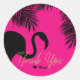Adesivo Redondo Festa Tropical Rosa & Negro Flamingo & Palm