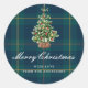Personalized Christmas gift stickers and labels featuring festive Christmas tree with forest green and navy tartan plaid design.