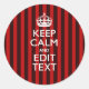 Adesivo Redondo Festivo Mantenha Calmo Seu Texto em Stripes Vermel
