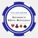 Essas adesivos estilo fichas de pôquer azuis-marinho e brancas seriam uma adição perfeita a uma caixa de lembranças, envelope de convite e muito mais. Personalize seu design com seu nome e data de nascimento # em preto no centro, e aniversário em azul no topo.