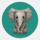 Adesivo Redondo Filhote de Elefante Bonito Sentado, Azul Teal