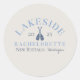 Relaxe no lago com este adesivo redondo clássico para despedida de solteira no estilo costeiro. Um design simples e clássico com tipografia moderna, esboço de cena pintado à mão em aquarela e detalhes à beira do lago. Este itinerário de fim de semana é perfeito para fins de semana relaxantes de despedida de solteira à beira do lago.