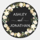 Obrigado de escrita de caligrafia adorável para casamento, adesivos de casamento / selos para adicionar aos seus envelopes, convites, cartões e/ou presentes. Rosa esbranquiçada, bege, champanhe, branco de baunilha, flores de coroa em fundo preto. A COR DE FUNDO PODE SER ALTERADA. Perfeito para qualquer casamento na primavera, primavera ou no verão. Etiquetas de modelo editáveis.