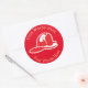 Este adesivo redondo personalizado é decorado com o Fire Department Helmut e pode ser personalizado acima com o nome de uma cidade e abaixo com o número do motor ou estação, ou qualquer outra informação que você queira substituir.