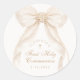 First Holly Communion Gold Cross Ivory Bow Classic Round Sticker