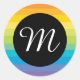 Adesivo Redondo Fita Arco-Íris Com Círculo Preto M Monograma