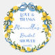 Adesivos de favor personalizados tema limões coquette fita azul, modelo de adesivos personalizados monogramados para chá de noiva com limões azuis e amarelos; suprimentos para festa de chá de noiva de verão, adesivos de agradecimento personalizados com limões italianos