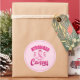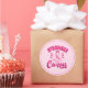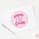 O adesivo é apresentado numa forma redonda grande com uma impressão de fita cor-de-rosa. Personalize este item ou comprar como está. Sensibilização do Cancer da Mama