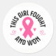 O adesivo é apresentado numa forma redonda grande com uma fita cor-de-rosa para sobreviver à impressão. Personalize este item ou comprar como está. Imagem Licenciada de Consciência do Cancer da Mama