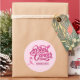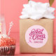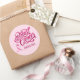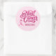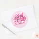 O adesivo é apresentado numa forma redonda grande com uma impressão de fita cor-de-rosa. Personalize este item ou comprar como está. Sensibilização do Cancer da Mama