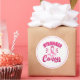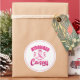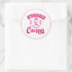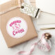 O adesivo é apresentado numa forma redonda grande com uma impressão de fita cor-de-rosa. Personalize este item ou comprar como está. Sensibilização do Cancer da Mama