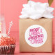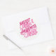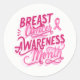 O adesivo é apresentado numa forma redonda grande com uma impressão de fita cor-de-rosa. Personalize este item ou comprar como está. Sensibilização do Cancer da Mama