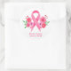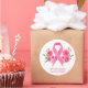 O adesivo é apresentado numa forma redonda grande com uma impressão de fita cor-de-rosa. Personalize este item ou comprar como está. Sensibilização do Cancer da Mama