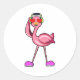 Adesivo Redondo Flamingo com Fone de Ouvido e Corações