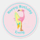 Flamingo cor-de-rosa carregando uma prancha amarela num adesivo redondo clássico de fundo cor-de-rosa. Concebido por Jacqueline. Personalizado por você. Todos os aspectos do projeto podem ser editados de acordo com o processo. Se precisar de ajuda com isso, me deixe uma mensagem.