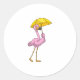 Adesivo Redondo Flamingo na chuva com guarda-chuva