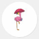 Adesivo Redondo Flamingo na chuva com guarda-chuva