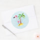 Adesivo Redondo Flamingo rosa e bonito em Natal Tropical