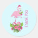 Adesivo Redondo Flamingo rosa em Santa Hat Whimsic Obrigado