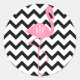 Adesivo Redondo Flamingo Rosa Monograma + Chevron Negro