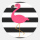 Adesivo Redondo Flamingo Rosa-Rosa-Stripe Preto e Branco