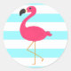 Adesivo Redondo Flamingo rosa sobre faixas de chá leves