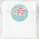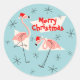 Adesivo Redondo Flamingo Santas Blue Merry Christmas sticker round
