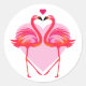 Adesivo Redondo Flamingos Amorosos com Moldura de Coração