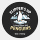 Adesivo Redondo Flippers Engraçados, Prendam-Se Com Os Pinguins