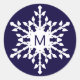 Adesivo Redondo Floco de Neve Branco Monogramado em Azul Marinho