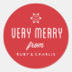 Um adesivo circular único, festivo, inspirado na safra, com um floco de neve, a frase "Muito Feliz", e seu nome! Perfeito para presentes de férias, pacotes, decoração, cartas e envelopes!