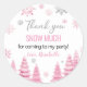 Adesivo Redondo Floco de neve rosa-inverno Obrigado Aniversário
