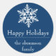 Feriados Felizes em Neve Favorecem Padrões / Etiquetas (Azul Marinho Escuro / Branco)... Estes obrigados de inverno divertidos que você rotula são a adição perfeita ao seu obrigado que você favorece para sua festa de feriado no inverno. Quer seja uma festa de Natal, Festa de Chanucá, Festa de Férias não-denominacional, ou apenas um inverno divertido juntam estes adesivos de favor são perfeitos para qualquer ocasião. Excelente para o toque final sobre presentes de Natal caseiros para professores, amigos, colegas de trabalho, etc...muito mais fantástico do que apenas o comum a partir de rótulos! Ideal para um casamento no inverno onde a noiva e o noivo estão se casando em um chalé de esqui ou em um palácio de gelo. O design apresenta um floco de neve divertido. O texto é completamente personalizável. Consulte WindyCityStationery.com para ver nossa linha completa de etiquetas "Floco de neve" em uma ampla variedade de cores, além de carimbos de postagem "Floco de neve", obrigado cartas, devolva etiquetas de endereços, salve as datas e muito mais.