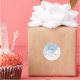 Adesivo temático de inverno "obrigado" com um deslumbrante design abstrato de aquarela em azul empoeirado, adornado com pequenos flocos de neve.