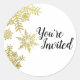 Faça seus convidados de casamento animados antes que eles abram seu convite adicionando um selo de envelope antes de postar. Com efeito de folha de ouro impresso flocos de neve para um olhar de luxo. Projetado para combinar com o resto da coleção Dourada de Flocos de Neve, que o ajudará a criar facilmente um conjunto bem coordenado de papelaria de casamento para o seu grande dia.