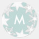 Adesivo Redondo Flocos de neve fosco Feriado de Monograma Azul Cla