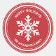 Adesivo Redondo Flocos de neve simples, vermelhos e brancos felize