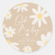 Este adesivo redondo faz parte da coleção de chá de bebê Floral Daisy caracterizada pelo estilo retrô com flores de margarida em aquarela e cores neutras do deserto que é adequado para menino e menina, ou chá de bebê neutro em gênero. Com inúmeras opções de personalização, este modelo é facilmente personalizável para todos os eventos e fácil de combinar com suas cores.