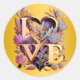 Adesivo Redondo Flor Elegante, Amor Coração e Ouro
