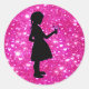 Adesivo Redondo Flor Garota Rosa Minúscula Corações Invertidas