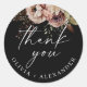 Floral de aquarela Obrigado Sticker com flores de bolo em queda para Casamento de Jardim Botânico / Festa de noivado / janto de ensaio em preto.