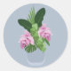 Adesivo Redondo Flor rosa Tropical Medinilla Rosa em Vaso Azul