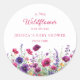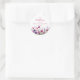 Produto típico do cliente, fofo, flor silvestre, rosa púrpura, chá de fraldas, adesivo clássico redondo branco com seu nome e data. Basta editar seu produto em alguns minutos. Você pode alterar a fonte/tamanho/cor e a posição usando "mais personalização".